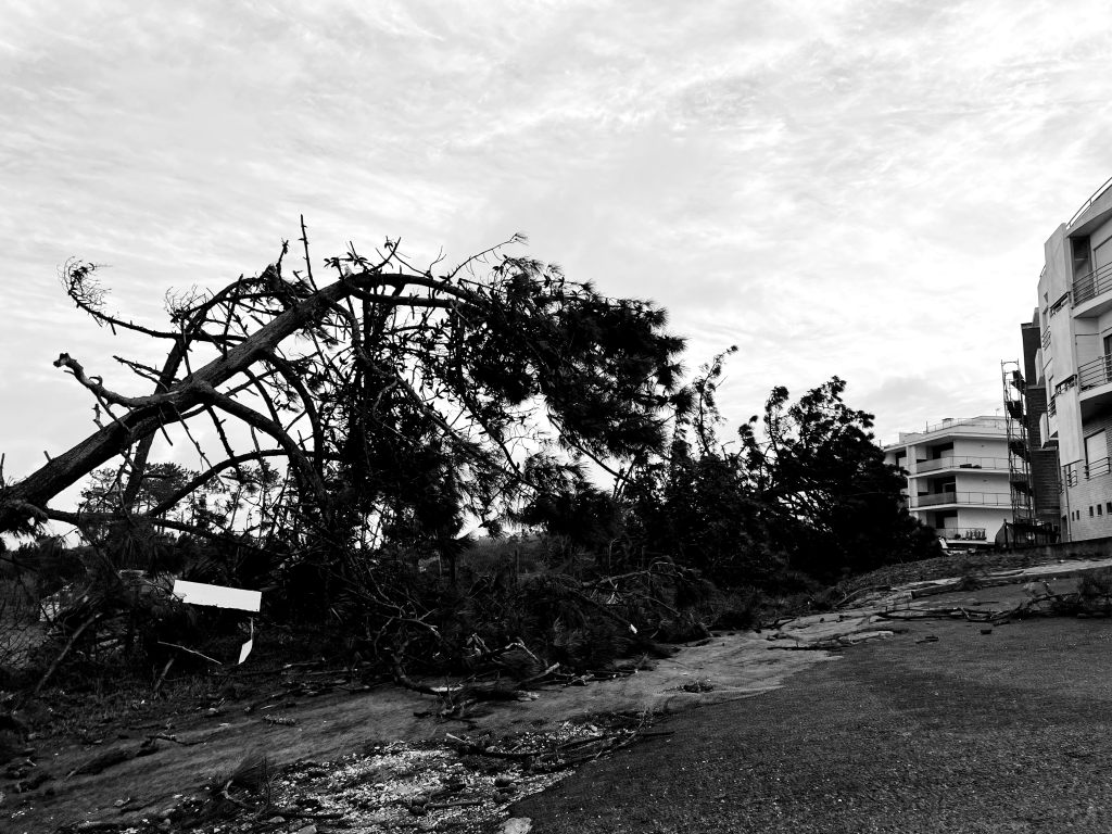 Quando abri a porta para a rua, percebi que o pinhal em frente à minha casa tinha sido completamente arrasado. Pinheiros partidos a meio, outros que simplesmente desapareceram. Árvores tombadas por todo o lado.