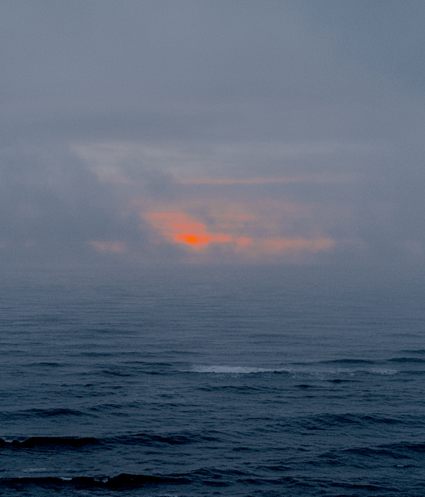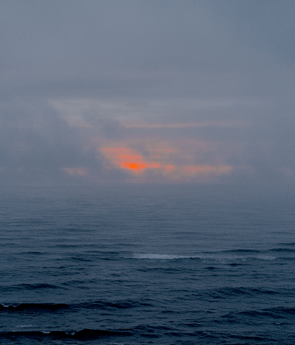 E agora já não estou mais no promontório que deixou de existir. Sem perceber como e também sem me questionar, flutuo agora sobre a água do mar, devagar, em direcção a oeste. O pôr-do-sol está diante de mim, engolido em muito nevoeiro. Olho para o sul e a vila da Nazaré desapareceu. O morro desapareceu, já não há um precipício, já não há uma ânsia de sobre ele saltar. Já não há pessoas, nem casas, nem paredão, nem estindarte. O mar tudo inundou.